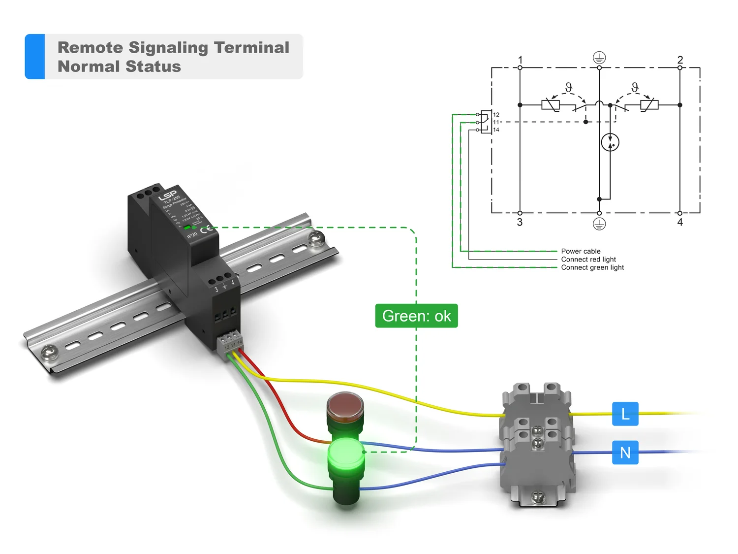 Дистанционните сигнални клеми на SPD тип 3 позволяват наблюдение на състоянието чрез външни алармени или контролни системи.