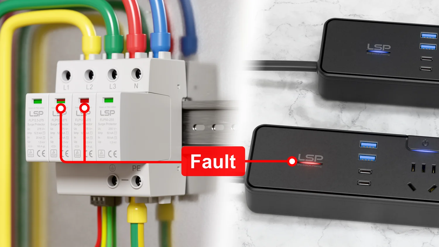 Power strips with surge protector typically serve as Type 3 surge protection, the last line of defense. If you only rely on this type of power strip in a high lightning risk area, the surge impact on the device will greatly increase, causing the surge protector to fail more easily. Therefore, users are advised to regularly check the status indicator light on the power strip; if the red light illuminates, it indicates protection failure and the device should be replaced promptly to avoid damage to connected equipment.