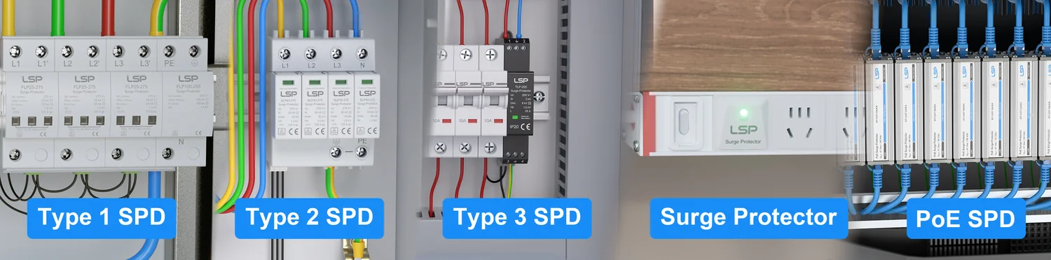 If you live in a region with frequent lightning strikes, the first consideration is whether external lightning protection devices such as lightning rods, lightning conductors, down conductors, and grounding rods are installed. These devices safely direct the direct lightning energy to the ground, reducing the impact on the building’s internal wiring. Secondly, the deployment of multi-stage surge protectors in the electrical system is crucial. For example, installing Type 1 (or Type 1+2), Type 2, and Type 3 surge protectors achieves effective layered protection, significantly enhancing the overall lightning protection capability of the system.