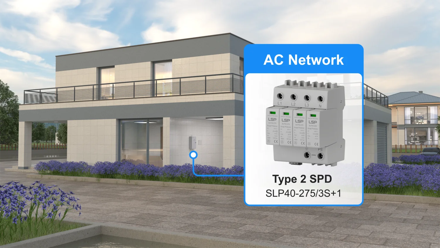 Example: Never install a 275V SPD in a 400V AC system. Models like the LSP SLP40 series support 120V, 230V, and 400V AC networks.